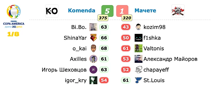 Три верзилы — это сила. Тёзки собрались и разнесли Евро 2020 Кубок Кубка J в одну калитку с 7 победами из 7-ми. Лучшим игроком Коменды на Евро 2020 стал — Игорь Крылов (45-й в ОЗ) 👏. Тем временем, наш новичок Bi.Bo. размялся до 28-го места.
