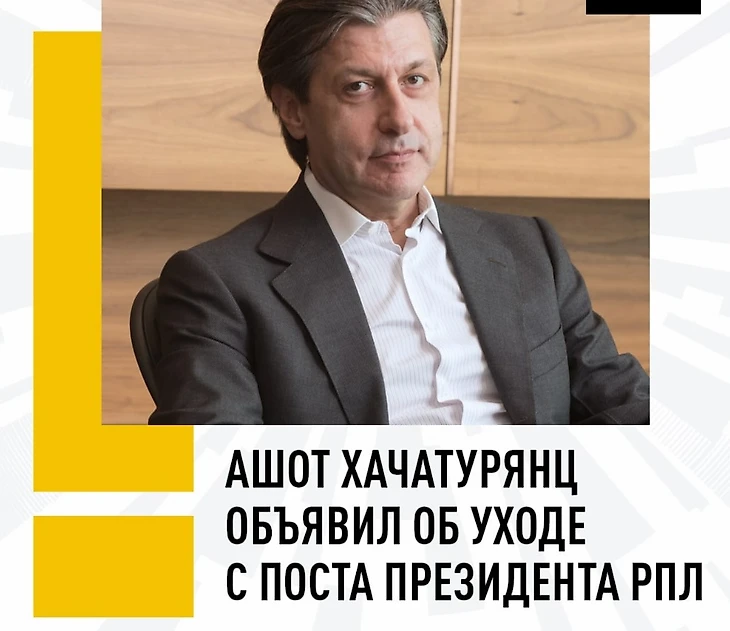 Как сообщает телеграм-канал «Мутко против», Ашот Хачатурянц покидает пост президента РПЛ ⚡️