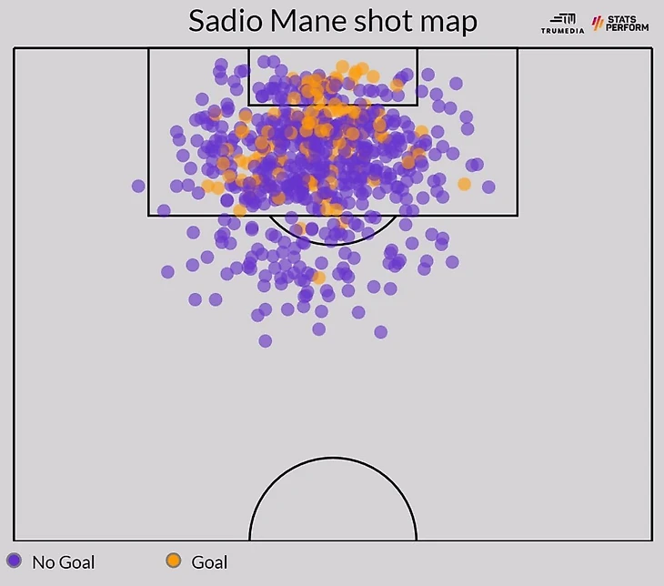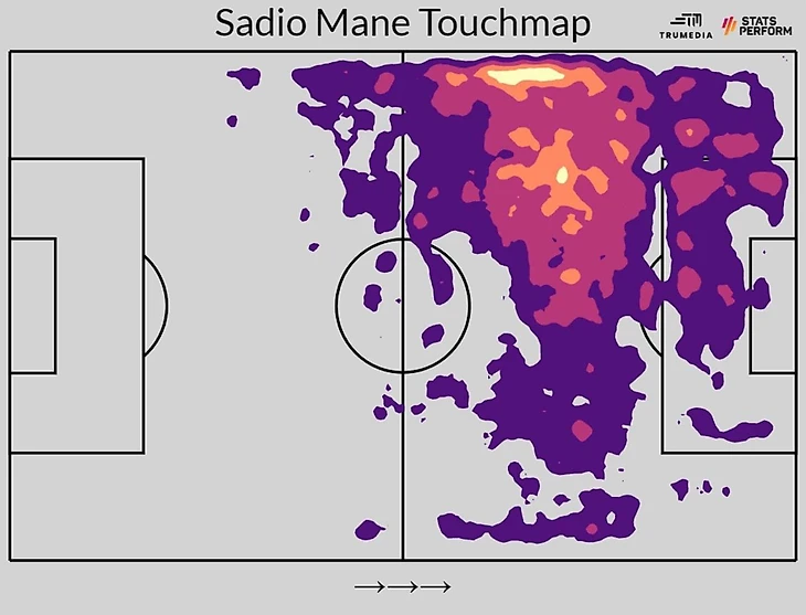 Карта активности Садио Мане в Ливерпуле
