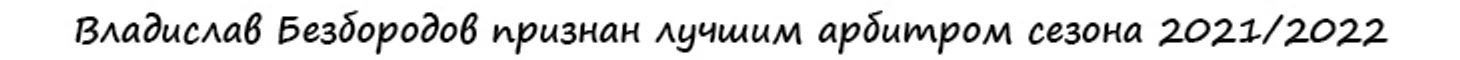Судья категории FIFA Владислав Безбородов получил лучший средний балл за отработанные матчи по итогам завершившегося сезона 2021/2022. Результат формировался из оценок инспекторов матчей с учётом решений экспертно-судейской комиссии РФС.