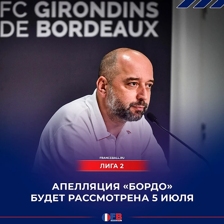 14 июня DNCG понизил "Бордо" до Национальной лиги. Как выяснилось, заседания по апелляции клуба состоится 5 июля. Таким образом, у "жирондинцев" осталась неделя, чтобы найти 22 миллиона евро.