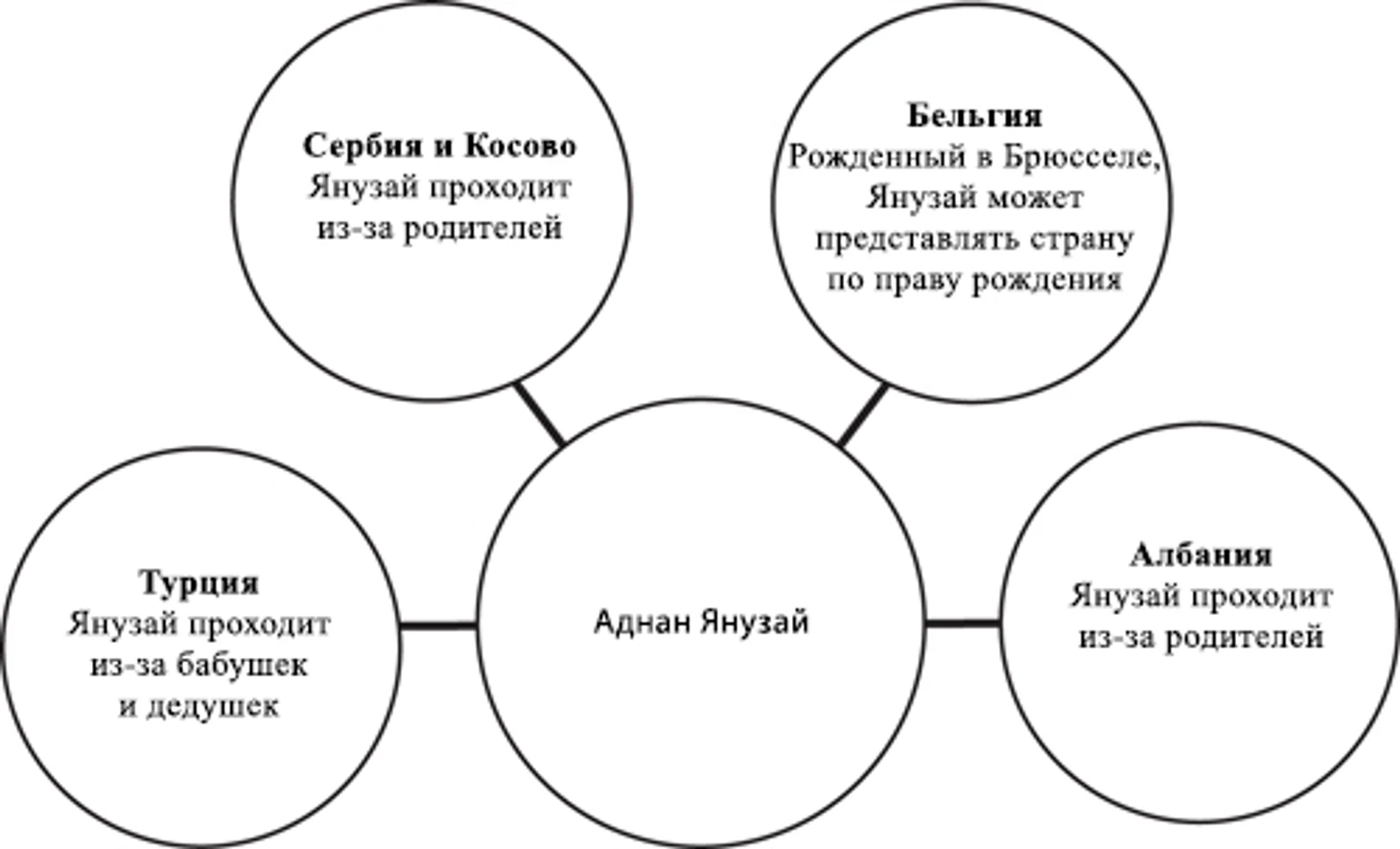 Вопрос гражданства и в лучшие времена может сбить с толку. В эпоху глобализации родиться в одной стране, вырасти в другой и жить в третьей стало более распространенным явлением, чем раньше. Возьмем пример Аднана Янузая, который дебютировал за первую команду «Манчестер Юнайтед» в 2013 году. Учитывая, что он родился в Брюсселе, он имел право выступать за Бельгию, а учитывая, что его родители — косовские албанцы, он также имел право выступать за Албанию, Сербию или Косово (хотя до 2016 года в Косово не было сборной, признанной ФИФА или УЕФА).