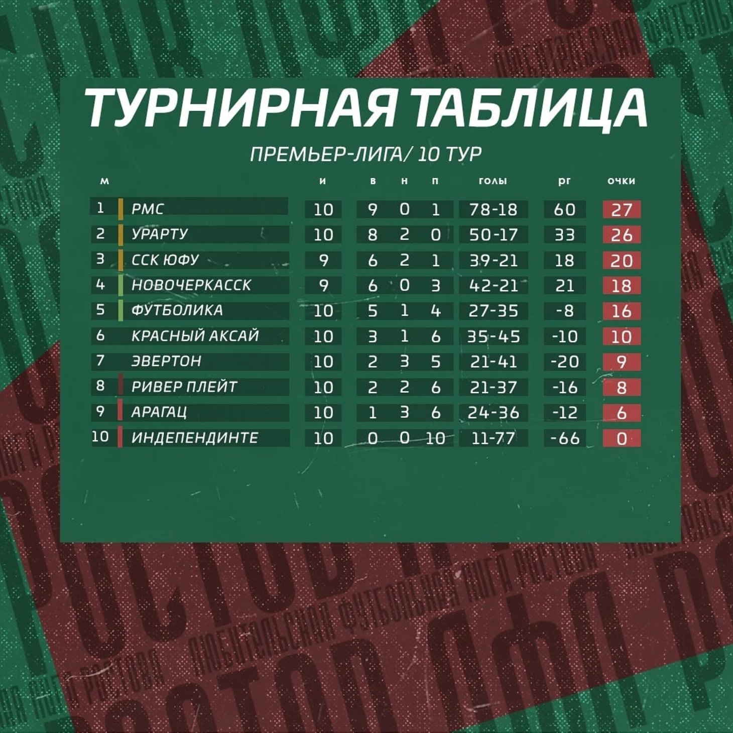 Вообще, то, что «Победа» приняла решение играть в данном турнире - заслуживает уважения. Это ведь совсем другой уровень. Будем ждать начала розыгрыша, а пока вы можете ознакомиться с текущей турнирной таблицей и последними результатами матчей ЛФЛ Ростов.