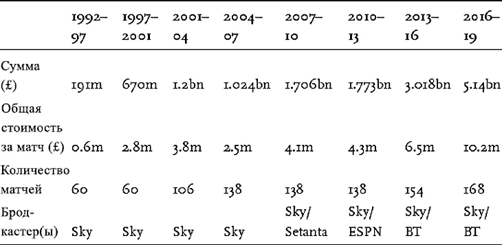 Историческая таблица прав на прямые трансляции Премьер-лиги Великобритании