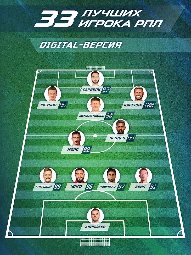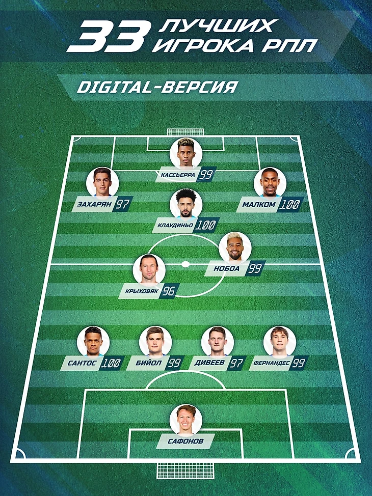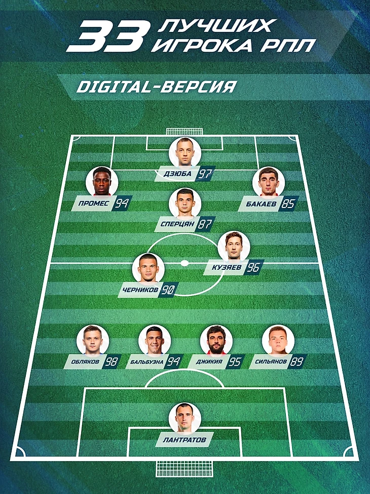 Основной состав digital-версии 33 лучших игроков РПЛ
