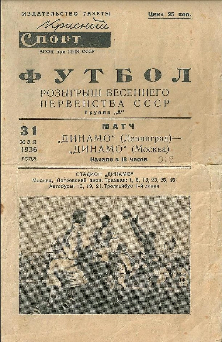 31 мая 1936 года. Сегодня две встречи чемпионата СССР в Москве и Ленинграде