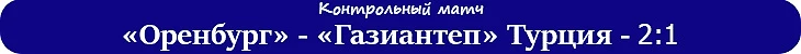 «Оренбург» - «Газиантеп» Турция - 2:1 02.07.2022 (суббота). Турция. «Оренбург» (стартовый состав): Гошев, Хотулев, Полуяхтов, Сиваков, Оганесян, Стаматов, Малых, Ковалев, Башич, Титков, Сычевой. Голы у «Оренбурга»: Оганесян 35, Марин 72.