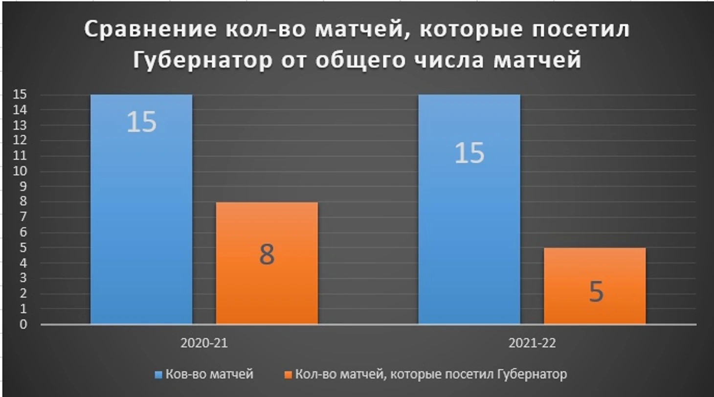 Ещё немного статистики. Наглядно сравним кол-во матчей, которые посетил губернатор от общего числа матчей.