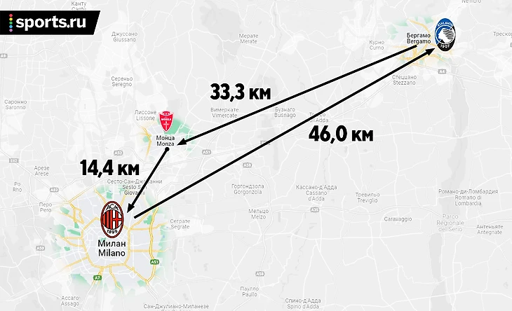 • Если открыть карту Италии, то можно увидеть, что весь трансферный путь Пессины (если не брать в счет аренды) Монца-Милан-Бергамо-Монца уложился в 100 километров.