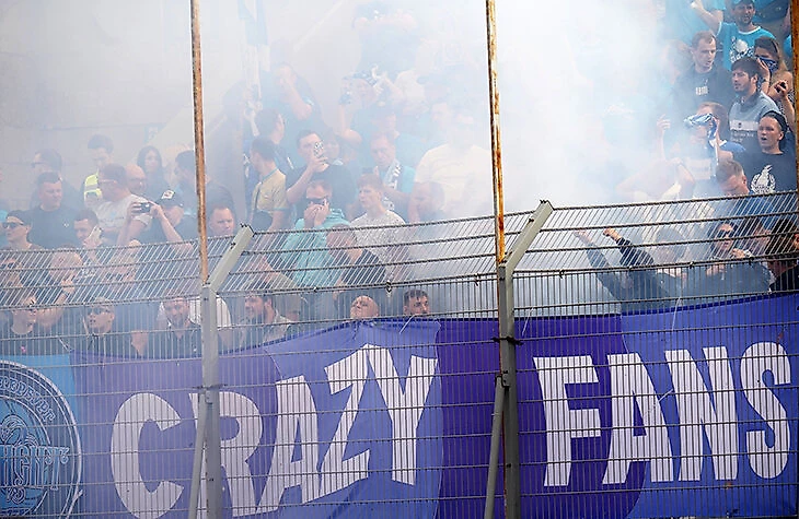 На трибунах тоже кайф: болельщики вспомнили 90-е, вывесив баннер «Crazy fans» – дым из селитры только добавил игре атмосферы.