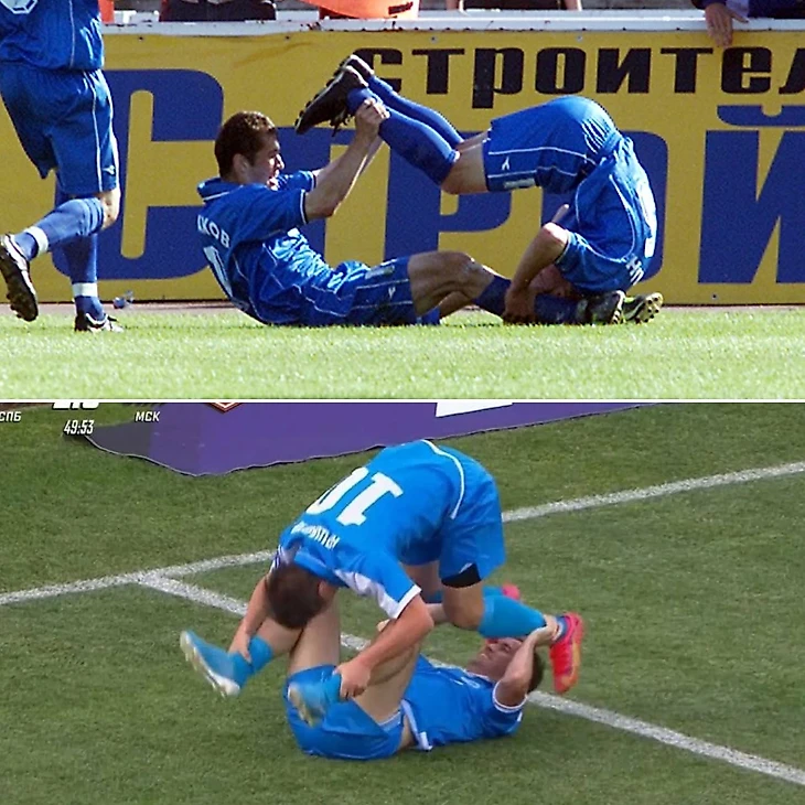 В Петербурге прошел матч легенд «Спартака» и «Зенита». Первым забил Широков (за «Зенит»), а потом случилось прекрасное: золотая связка Аршавин-Кержаков не только сочинила гол, но и исполнила легендарные кувырки.
