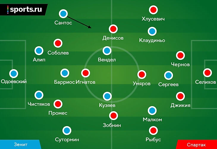 Гильермо Абаскаль также сохранил идеи предсезонки: ромбовые 4-4-2, где Соболев и Промес – центральные нападающие, а Игнатов – десятка. Основная интрига крылась в крайнем защитнике: Абаскаль пробовал справа Рассказова, Хлусевича и Литвинова. В итоге испанец остановился на Хлусевиче.