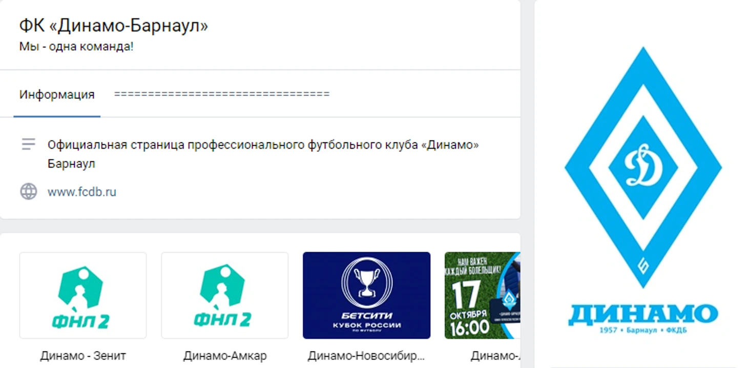 Паблик, о котором идёт речь, неофициальный – его ведут сами футболисты. Официальная страница «Динамо» ВКонтакте тоже есть, и там даже постят новости о молодёжке, но каким-то гениальным SMM барнаульцы не блещут. Всё чинно, ровно, согласовано со всеми отделами. Есть и ладно!