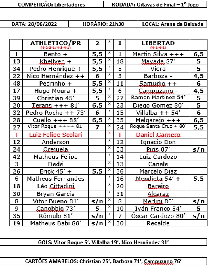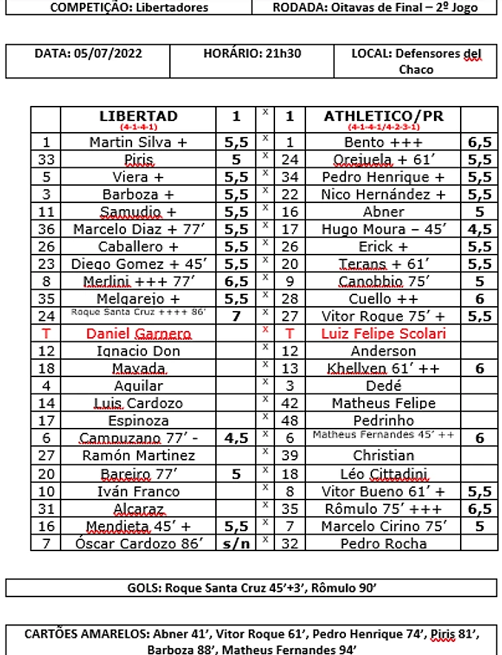 Разозленный Фелипао тут же заменил виновника гола Матеусом Фернандесом. Но Либертад почувствовал себя увереннее. Даже в более медленном темпе по сравнению с 1-ым таймом бело-белые продолжали контролировать ход игры. Снова мог забить парагвайский суперветеран, но удар головой Роке Санта-Круса на 15-й минуте тайма потащил Бенто.