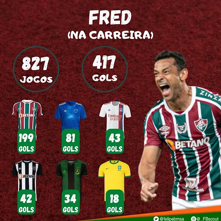 Напомним, в своей долгой карьере Фред играл за такие клубы, как "Америка Минейро", "Крузейро", "Лион" и "Атлетико Минейро". С "Лионом" Фред трижды выиграл чемпионат Франции, с "Флуминенсе" - дважды становился чемпионом Бразилии. За сборную Бразилии форвард провел 39 матчей, забил 18 голов, и в 2013 году выиграл Кубок конфедераций, не скажу что в Селесао он оставил какую-то добрую память, скорее превратился в ходячий мем и пожалуй олицетворение того ужасного провала в поколениях,которое случилось перед домашним ЧМ..