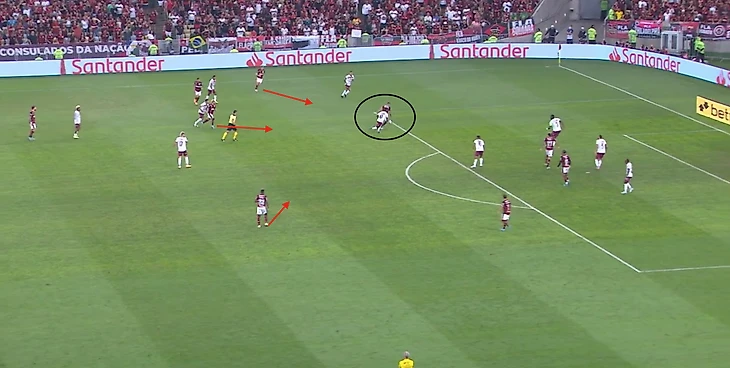 "Форталеза" правильно сделала, что закрылась в матче с "Палмейрасом" — низко встречали блоком 5-4-1, моментов с позиционными атаками у "Палмейраса" (несмотря на тот факт, что отмечали их прогресс в матчах, которые идут по такому сценарию) толком не было. Единственный хороший шанс — выход Брено Лопеса один на один в конце матча, но это была как раз одна из редких ситуаций, когда Форталеза встречала высоко (и её прессинг прошли).