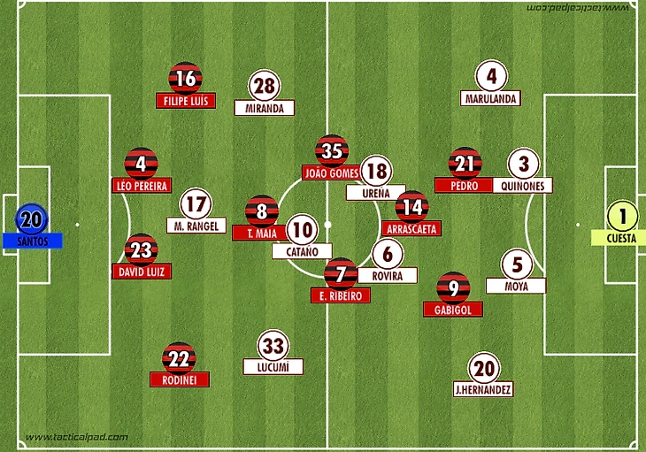 Менго просто не оставил камня на камне от колумбийцев. Наконец-то проявила себя в полной мере связка Педро-Габигол. Если последний уже отрезанный ломоть для Тите, то автор покера при сохранении темпа имеет все шансы снова попасть на радар сборной.
