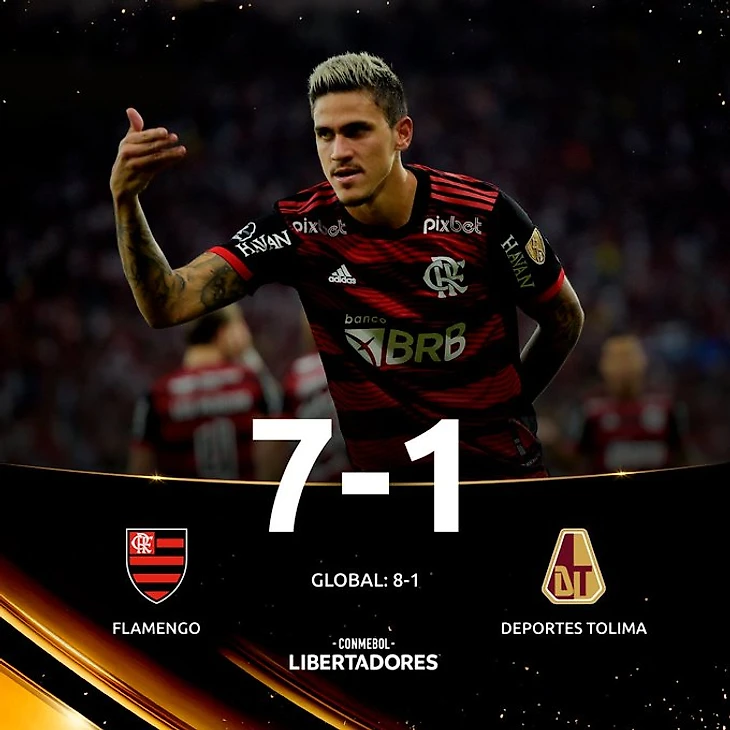 Ну и конечно похвалю мальчишку Матеуса Франса, забившего с передачи Педро. Чумовой талант растет. Если бы мяч еще раз попал в ворота, красно-черные устроили бы свой самый большой разгром в Либертадорес в своей истории, а так лишь повторили избиение Минервена 8-2 в 1993 году.