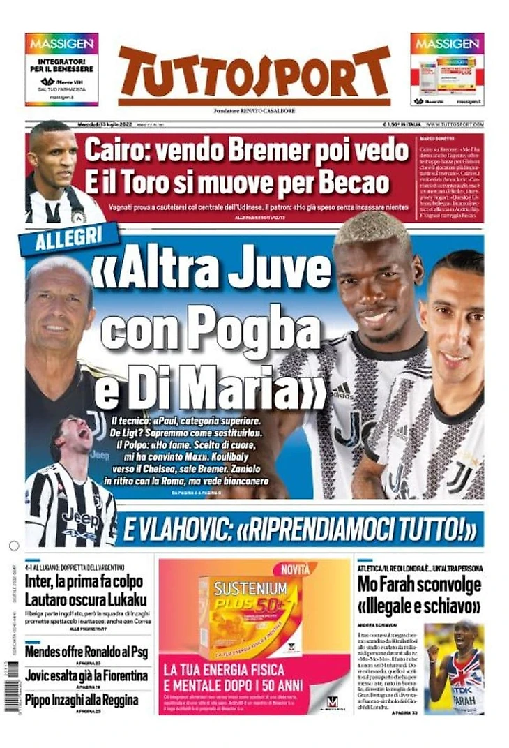 Другой «Юве» с Погба и Ди Марией. Заголовки Gazzetta, TuttoSport и Corriere за 13 июля