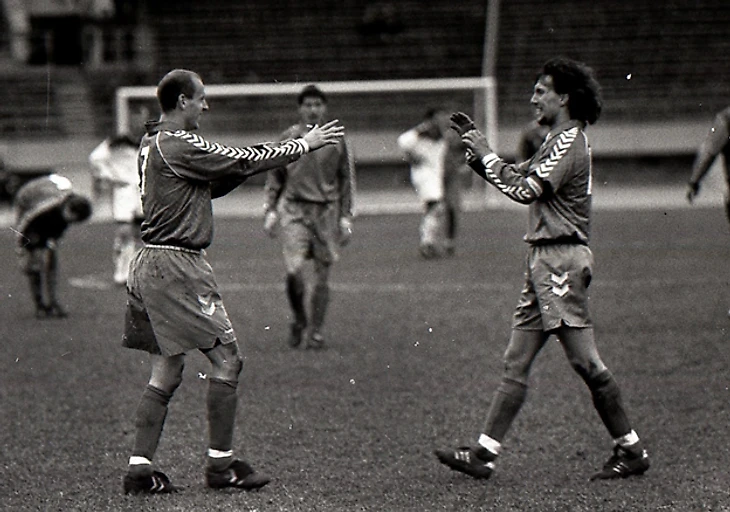 А вот эта команда, мягко говоря, болельщикам не запомнилась. И сложно сказать, в чем причины – то ли в середине 90-х всем настолько не было до футбола, то ли по меркам предыдущих команд тот Факел казался каким-то бедным родственником, то ли главного тренера Сергея Савченкова не воспринимали всерьёз как специалиста, хотя тот в свой второй и самый долгий заход с Факелом тренировал команду уже четвертый сезон, вытащив ее за уши из второй лиги. Владимир Зинич, Михаил Зубчук, Геннадий Семин – определенный костяк команды был.