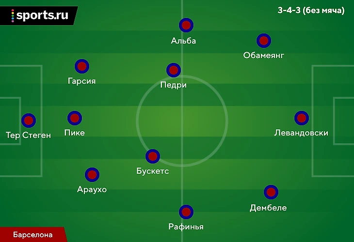Самый рациональный путь – взять за основу прошлогодние 4-3-3 Хави (речь не только про расположение, но и про роли внутри схемы) и попытаться отыскать там места для новых звезд. Именно в рамках этого варианта Рафинья/Дембеле и Обамеянг/Левандовски оказываются прямыми конкурентами, особенно если мы учитываем не только позиции, но и функции.