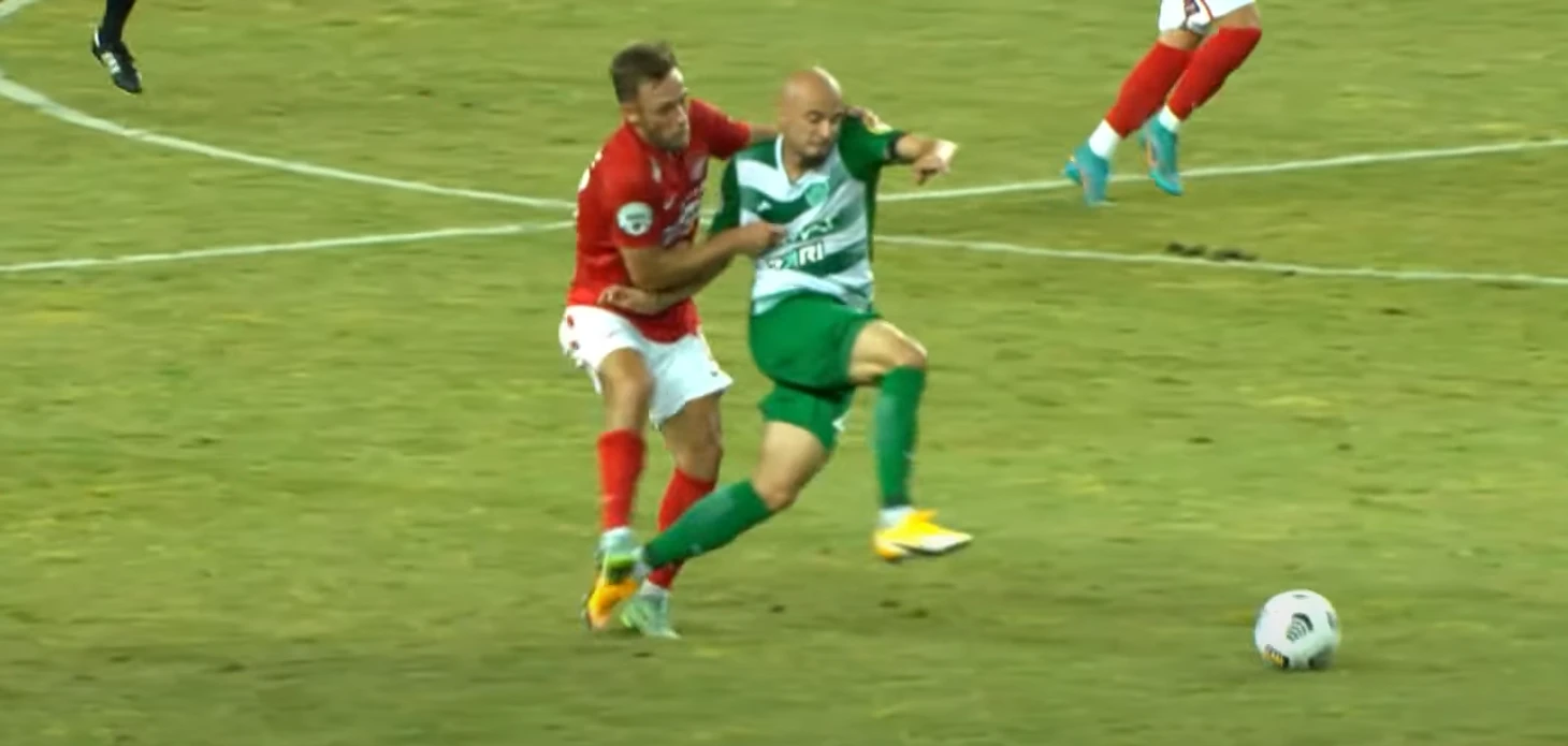 Ну вот что это такое? Для меня- это срыв атаки и чистая желтая карточка. Я не знаю какие тут могут быть вопросы.