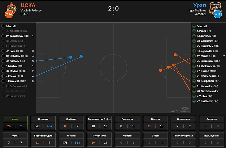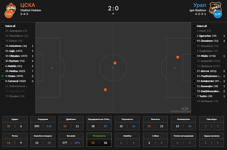 Матч первого тура армейцев против Урала прошел с подавляющим преимуществом хозяев поля и должен был заканчиваться с более крупным счетом, чем 2:0. 30 ударов, xG 3,49 (данные understat.com) полностью отражают преимущество которым владели подопечные Владимира Федотова. В большей части опасных моментов был задействован вернувшийся из европейской командировки Фёдор Чалов.