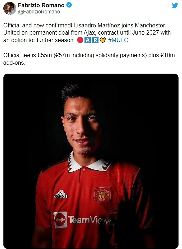 На выходных «красные дьяволы» объявили, что договорились о трансфере 24-летнего защитника «Аякса». Сумма сделки составит 57 миллионов евро с возможными бонусами еще на 10 миллионов евро.