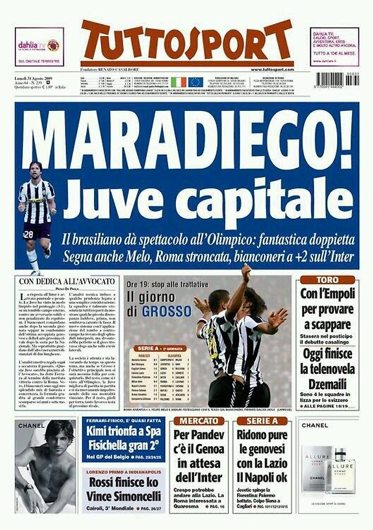 Уже на следующее утро известная туринская газета Tuttosport вышла с фотографией Диего на передовице и подписью - «MaraDiego», в которой были обыграны имена Диего Марадоны и его бразильского, так сказать, тезки. После того триумфа журналисты поспешили назвать «Ювентус» главным оппонентом для «Интера» в борьбе за чемпионство, а Диего – потенциально лучшим игроком сезона в Серии А.
