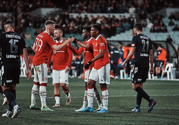 Следующим противником красных дьяволов уже в Мельбурне стал одноименный клуб «Мельбурн Виктори». Именно в этом матче Юнайтед пропустил первыми гол, но смог по итогу закатить четыре в ворота соперника. Пропустила английская команда с контратаки, но потом Скотт Макктоминэй дальним ударом с помощью рикошета сначала сравнял счет, а потом Антони Марсьяль с передачи Диогу Далота уже вывел вперед клуб из Манчестера. Добил Мельбурн Маркс Рэшфорд после снова же слаломного прохода Эрика Байи, реализовав выход 1 на 1. В этом матче снова два состава поиграли по 45 минут. В «основе» вместо Рэшфорда на первый тайм вышел Энтони Эланга, а вместо получившего травму Варана играл любимый болельщиками Харри Маггуаир.
