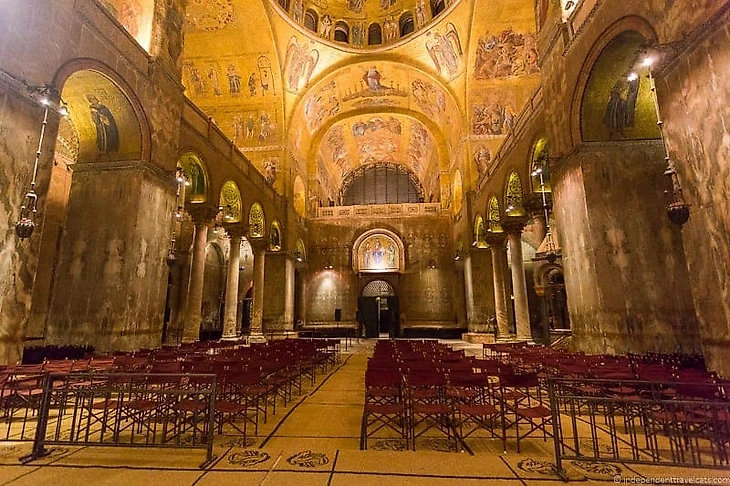 В интерьере собора Сан-Марко, например, использовали 8,5 тысяч квадратных метров позолоченной мозаики – не просто так главную церковь Венеции прозвали Chiesa D’Oro (Церковь золота).