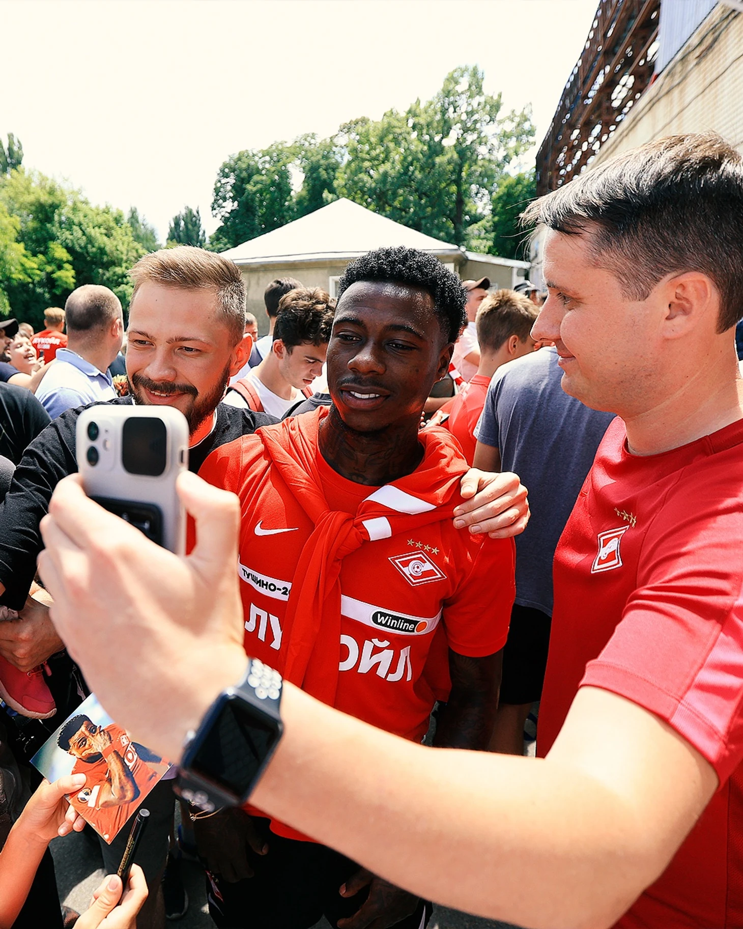 Команда переночевала в городе и провела тренировку после перелета из Москвы. На улице Ставрополя игроков встретили сотни болельщиков «Спартака».
