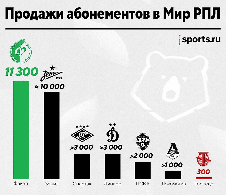 «РБК» со ссылкой на источники рассказал о том, как с продажами сезонных абонементов обстоят дела в «Зените», «Спартаке», «Локомотиве», ЦСКА и «Динамо». Везде наблюдается серьезный спад – и на этом фоне выделился «Факел», который продал больше абонементов, чем все топ-клубы столицы вместе взятые.
