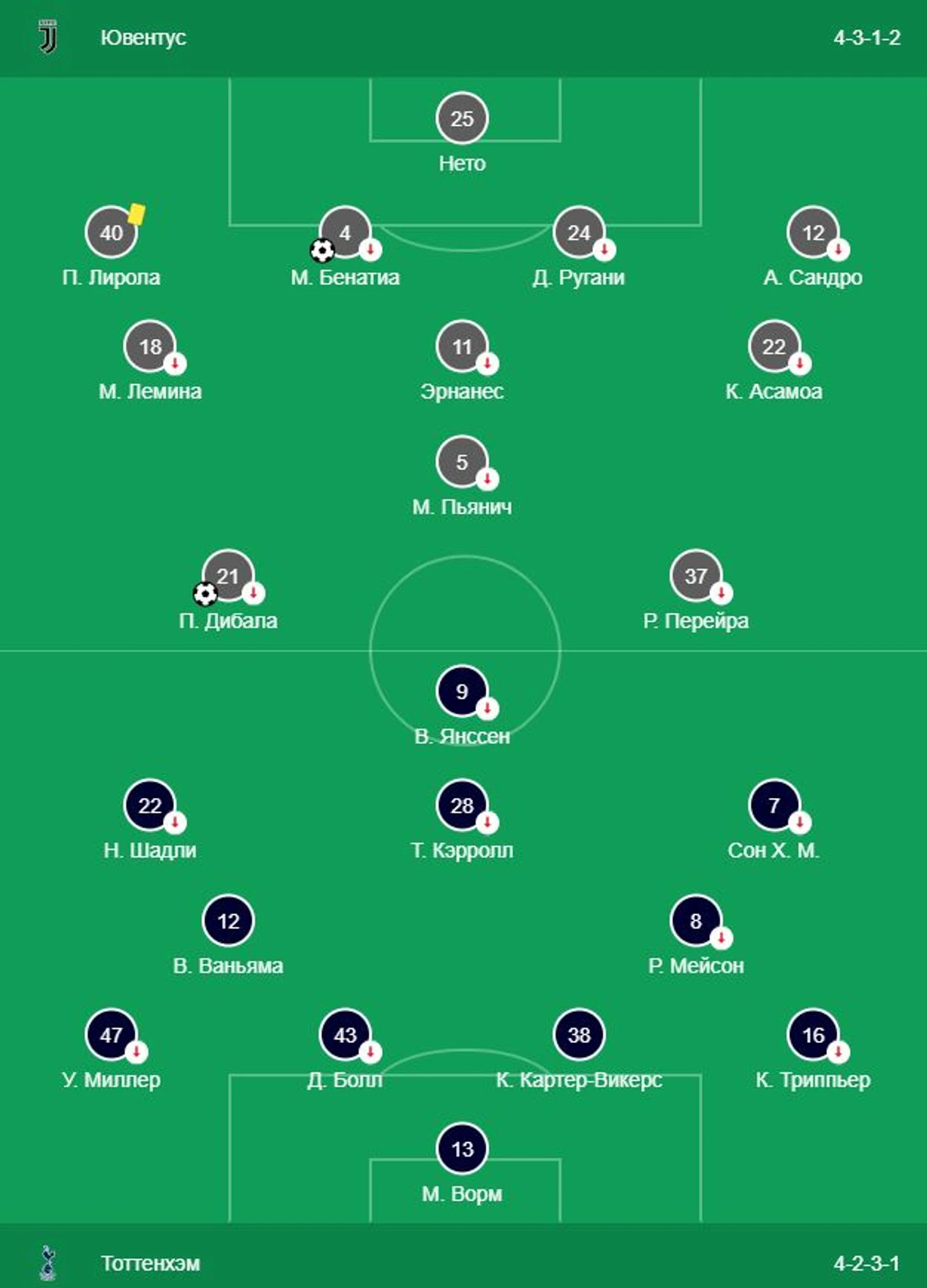 При счете 1:2 Сарри выпускает нового защитника Де Лигта, и Моура с легкостью его обводит и сравнивает счет. Матч так и должен был закончиться со счетом 2:2, но Кейн внезапно решил ударить по воротам прямо из центрального круга, и Щенсны зевнул этот удар себе за шиворот. Потрясающий сюжет, обида для Ювентуса, счет 2:3. Уже видна рука Сарри, который старается заточить команду на атакующий футбол с доведенными до автоматизма передачами в касание, но пока еще слишком рано.