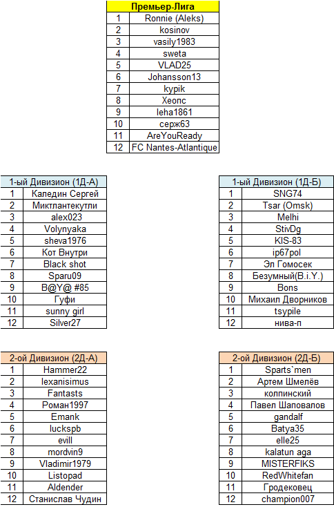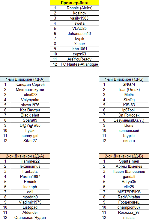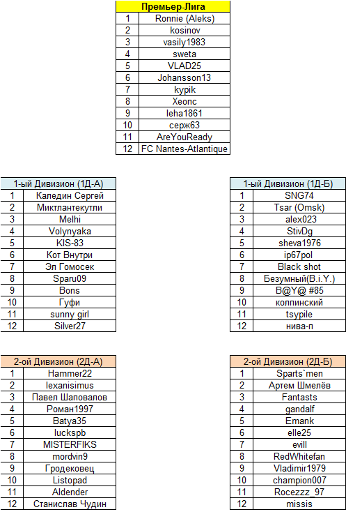 После завершения Первенства №2 пришло время формирования состава Лиг и Дивизионов Первенства следующего.