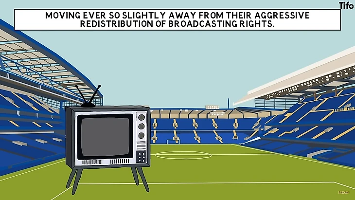 В период формирования Премьер-лиги английские футбольные клубы - доминирующие в турнире, пришли к выводу, что они не смогут создать привлекательное соревнование, в котором значительную роль играют только несколько клубов, когда остальные - фактически, по финансовым и игровым условиям, находятся за бортом. Нельзя было допустить игнорирования "маленьких" футбольных команд. В качестве стимула, или решения этой проблемы они предложили "агрессивное перераспределение доходов от телевещания". Это была относительно новая идея для европейского футбола, где клубы обычно продавали свои телевизионные права индивидуально, а не коллективно.
