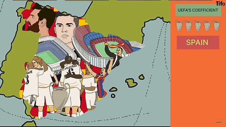Английская футбольная Премьер-лига считается самой зрелищной, хотя коэффициент УЕФА, который учитывает результаты в европейских соревнованиях за пятилетний период, оценивает испанскую Ла Лигу как высшую по уровню игры лигу в Европе, которая опережает Англию, Германию, Италию и Францию.
