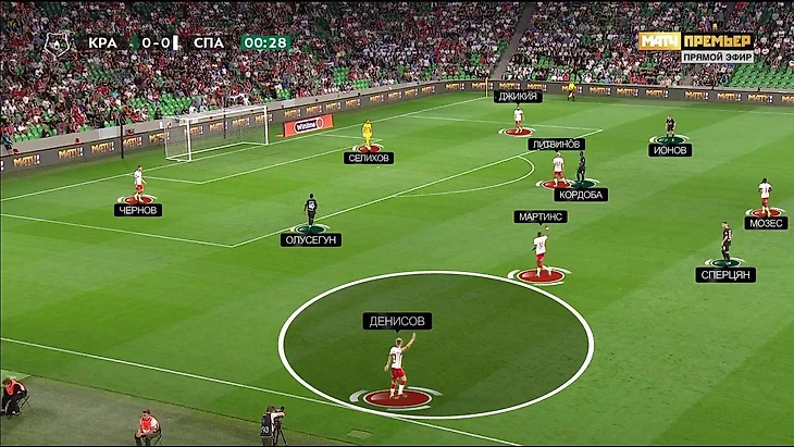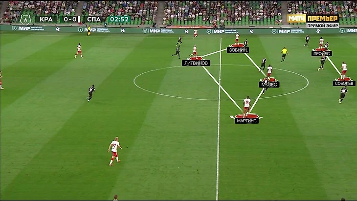 После объявления состава «Спартака» казалось, что москвичи снова сыграют 4-3-3 с Литвиновым, Мартинсом и Романом Зобниным в центре поля и Мозесом, Квинси Промесом и Соболевым в атаке.