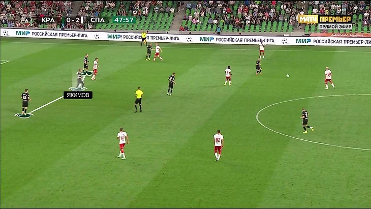 Сразу после удаления Черникова Сторожук заменил Кордобу на опорника Вячеслава Якимова. Так «Краснодар» фактически перешел на 4-3-2, где Ионов и Олусегун составляли первую оборонительную линию (когда «Спартак» переходил в долгое владение на чужой половине, Ионов садился ниже).
