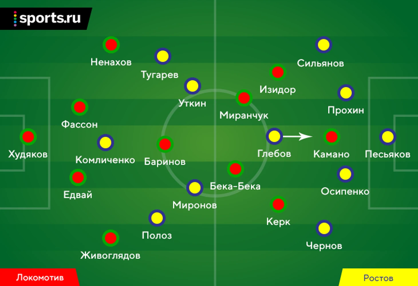 2. «Ростов» приятно удивил в матче против «Динамо» (1:1): пользовался пассивностью соперника при прессинге, растягивал чужую оборону и неожиданно много владел мячом (67%). С «Локо» Валерий Карпин сохранил фирменные 4-3-3, но сделал одно изменение в основном составе – Алексей Миронов вытеснил Хорена Байрамяна.
