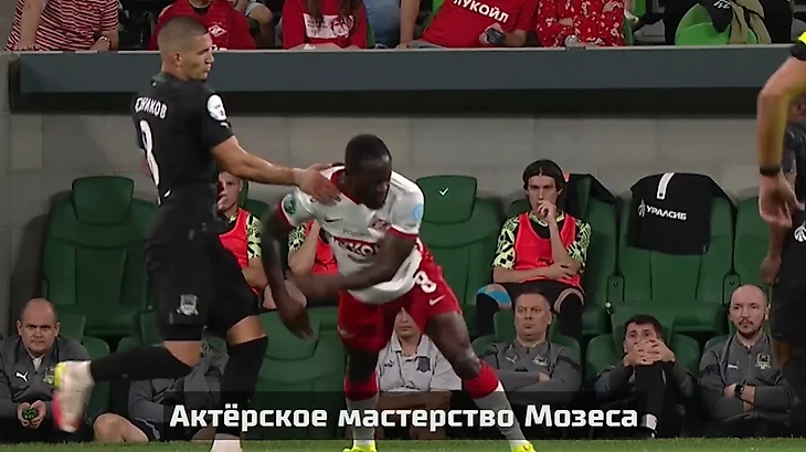 Третья претензия – удаление Александра Черникова. Здесь «Краснодар» оценивает «актерское мастерство Мозеса». Вероятно, не видят акцентированного удара по сопернику.