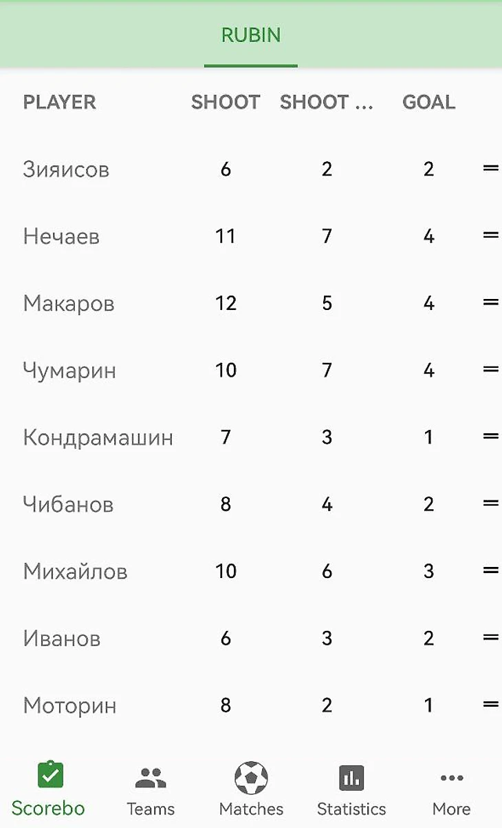 — Оцениваем игру своей команды — что получается/не получается выполнять по тренерским установкам. Смотрим, насколько качественно мы провели матч как команда, ставя оценку действиям на основании данных (по аналогии с SofaScore для взрослых команд).
