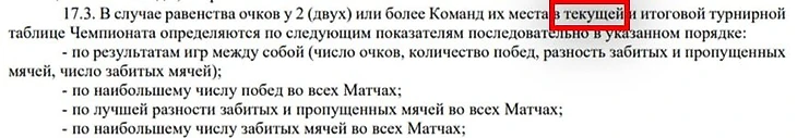 🧐 В актуальной версии регламента прописаны вот такие критерии, чтобы определить места при равенстве очков. Для текущей и итоговой таблицы они одинаковые (иногда бывают случаи, что при определении мест в текущей таблицы не учитываются личные встречи – только в итоговой; поэтому и делаем акцент на этот момент).