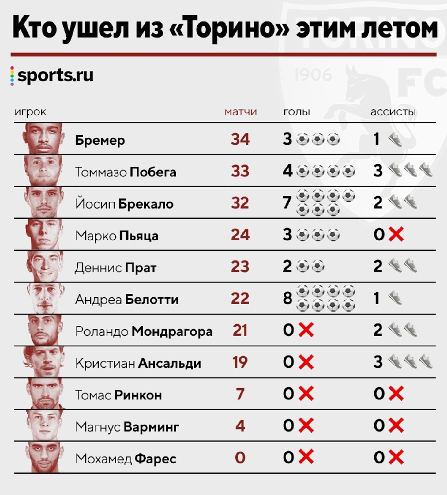 • Ушедшие игроки забили 27 из 46 голов «Торино» в прошлом сезоне Серии А. Да, сильно больше половины;