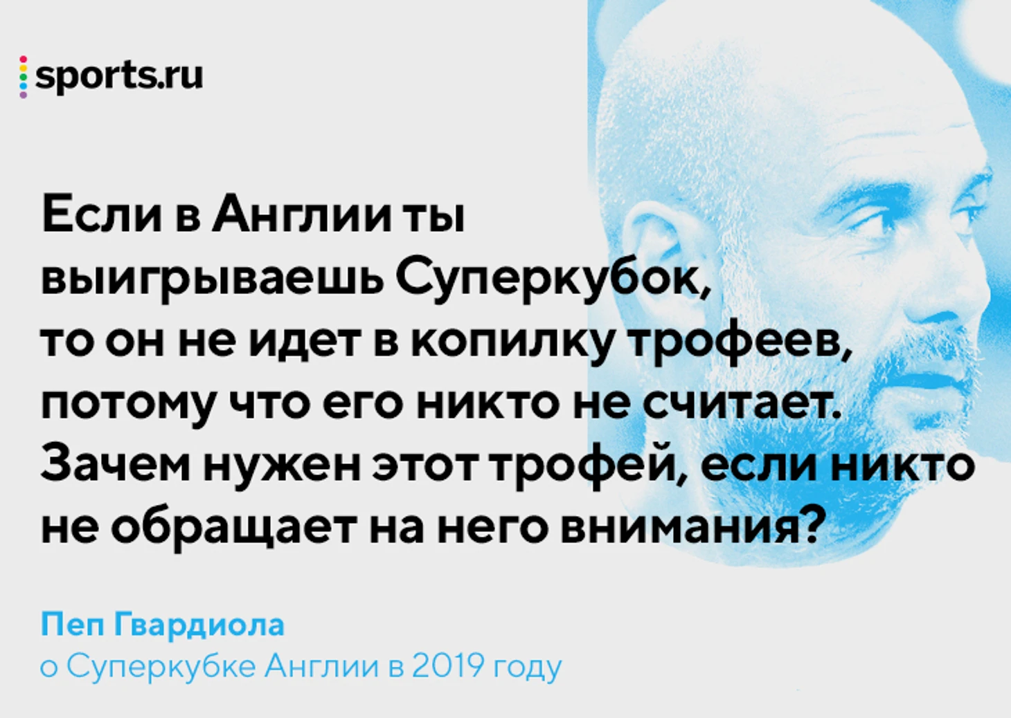 Пеп Гвардиола еще в 2019 году возмущался тому, что на трофей никто не обращает внимания. В пример специалист приводил аналогичные турниры в Испании и Германии, к которым относятся со всей серьезностью.