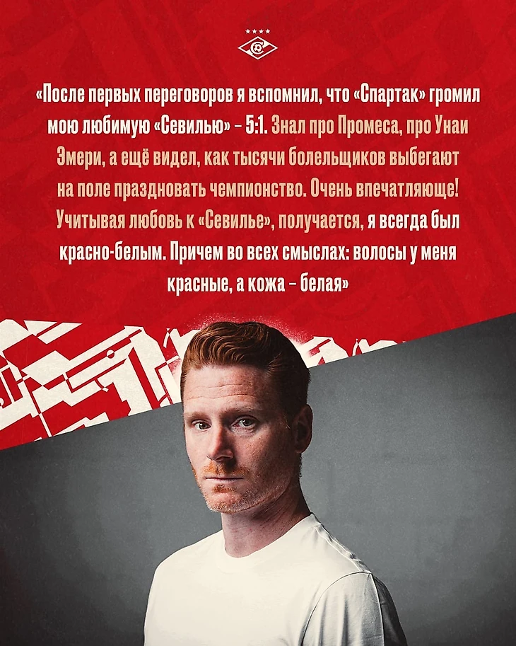 — За «Севилью». Это моя родная команда, она у меня в сердце. Так что я всегда был красно-белым. Причем всех смыслах: волосы у меня красные, а кожа — белая.