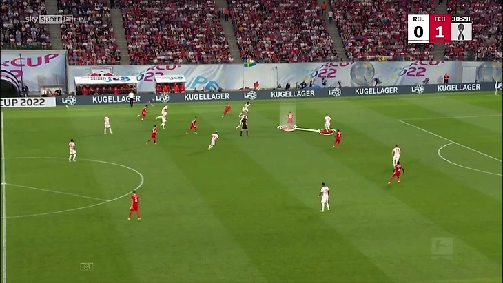 Открывания и пас Мюллера разрушили (в прямом смысле) линию из трех центральных защитников «Лейпцига». Они должны действовать как единый механизм, но Томас разорвал связи между ними.
