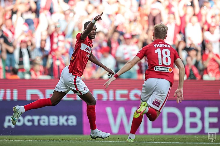 С самого начала у «Спартака» вырисовалась схема 4-1-2-1-2 с Квинси Промесом и Александром Соболевым на острие и Виктором Мозесом под ними. К 15-й минуте красно-белые организовали второй быстрый гол: Промес сделал мягкую подачу во вратарскую, откуда Соболев точно пробил головой – 2:0.