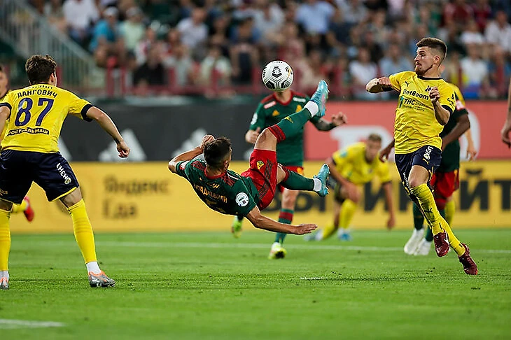«Локомотив». Продолжим про этот великий матч! Скорее всего, вы запомнили, как судья Сухой тормознул игру посреди атаки москвичей под крики Генича «Судьяяяяяяяяя! Сухоооооооооой!», но все же Константин Марадишвили чуть ранее подарил хайлайт помощнее. Спасительный голасо ножницами – сначала в происходящее не верилось.
