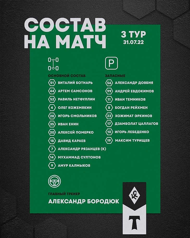 Модуль 4-2-3-1 смотрелся неожиданно после разгромного поражения, но тренерский штаб решил, что пары Кожемякин–Нетфуллин в центре будет достаточно. Неожиданно, по разным причинам, выглядело появление Калмыкова и Рязанцева в старте.